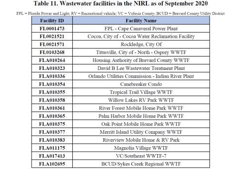 Furthermore, inadequate, deteriorating wastewater treatment system infrastructure leaks untold millions of gallons of raw sewage/wastewater into the north IRL basin and even directly into the IRL itself. For example, a primary sewer pipe for the City of Titusville North Osprey Wastewater Treatment Facility broke in 2020 and discharged 7.2 million gallons of raw sewage into ponds that flow directly into the north IRL.19